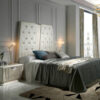 Fingers bed is characterised by its upholstered slats with a decorative inlay in the centre that matches the tops of the bedside tables. In this case we combine it with a light marble finish glass.