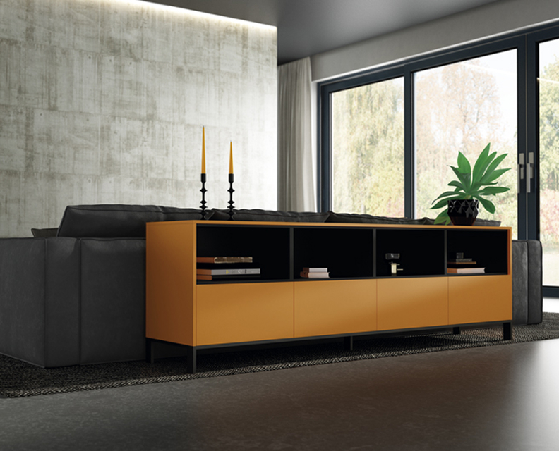 Aparador Atlas, permite distribuir a tu gusto las diferentes opciones de almacenaje que presenta, bien sean puertas, cajones o huecos, las posibilidades son infinitas. Igual de infinitas que los acabados. Combina con diferentes acabados, bien en roble o nogal con lacado o todo lacado con varios acabados. También está la opción de tapa y costados en porcelánico. Un mundo de posibilidades a tu alcance.