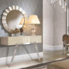 El bargueño Ámbito expresa su personalidad a través de su diseño. Costado curvo inclinado, tapa biselada y base maciza de pie despuntado, decorada con una barra de metal a juego con su tirador. Son algunos de los rasgos de su personal diseño que hace disfrutar a cualquiera que lo contemple.