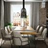 La mesa Sofía es una elegante opción para su comedor. Con una tapa rectangular de 4cm de grosor y canto biselado, que realza su belleza, afinando su figura. Los pies de metal en forma de L inclinada le dan un aspecto muy moderno y elegante. Disponible en acabados de chapa o laca. Esta mesa también cuenta con la posibilidad de agregar una sobretapa de porcelánico para un toque extra de elegancia.