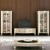 El aparador Ámbito expresa su personalidad a través de su diseño. Costado curvo inclinado, tapa biselada y base maciza de pie despuntado, decorada con una barra de metal a juego con su tirador. Son algunos de los rasgos de su personal diseño que hacen disfrutar a cualquiera que lo contemple. Posibilidad de base zócalo.