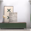Composición TV Trazos, diseñado con carácter y personalidad, de líneas rectas, claras y acentuadas. Su tapa de porcelánico en los módulos bajos, le añade un toque de glamour a su elegante porte. Su base de metal en diferentes modelos de pies, le aporta clase y modernidad. El pie modelo «T» puede ser en metal o cristal. Posibilidad de base zócalo.